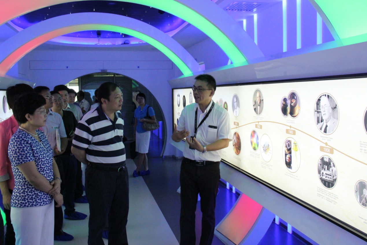 德力光電副總經(jīng)理葉國光陪同胡功民及鐘軍副市長先后參觀了外延片、芯片生產(chǎn)車間及展廳,副總經(jīng)理葉國光在參觀過程中介紹了公司的產(chǎn)品、生產(chǎn)工藝、行業(yè)優(yōu)勢等相關(guān)情況。胡功民對我公司的技術(shù)表現(xiàn)出了濃厚的興趣。