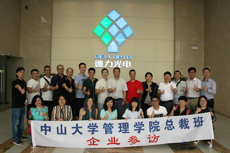 2016年6月4日,中山大學(xué)管理學(xué)院總裁班學(xué)員齊聚德力光電,在總經(jīng)理王非的帶領(lǐng)學(xué)員們先后參觀了員工康樂中心、車間以及展廳,并進(jìn)行了座談會。